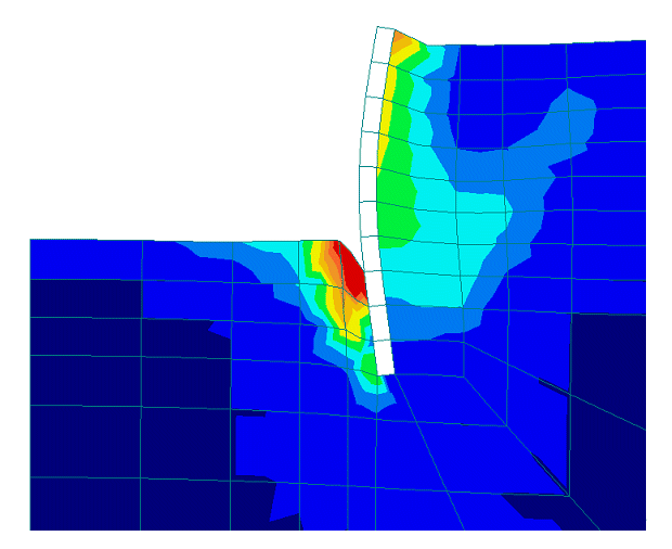 2D, Inplane, Plane Stress, Contact, Geometrically Nonlinear (GNL), Materially Nonlinear (MNL), Contour Plot, Elasto Plastic, Yield, Yield Symbol, Plastic Strain, Animation of Results