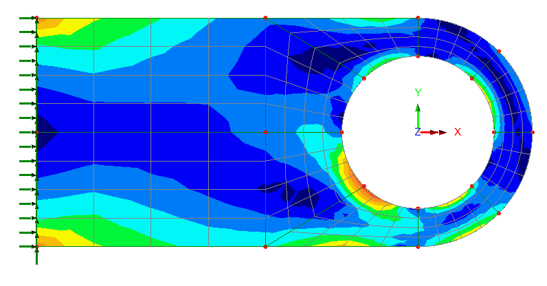 2D, Inplane, Plane Stress, Linear, Elastic, Regular Meshing, Irregular Meshing, Copy, Rotate, Mirror, Transformation, Groups, Deformed Shape, Contour Plot, Principal Stress Vector Plot, Graph Plotting, Slice Section Results.