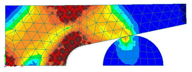 2D, Inplane, Plane Stress, Default Assignments, Linear, Slideline, Nonlinear, Contact, Fatigue, Damage, Cycles to Failure, Stress Contours, Displacement Results, Animation, Graph Plotting.