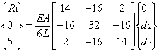 force vector specifies the applied load at node 3 together with the reaction force (R1)