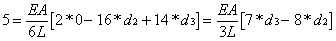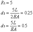 concentrated axial load of 5 at node 3. If the displacements at nodes 1, 2 and 3 are d1,
